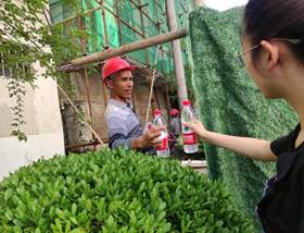 一个名同学说:“走向太阳下坚持工作的劳动者,我们将矿泉水送给他们手里。他们对我们的行为有些惊奇,但都是喜悦的。看到他们的脸上朴实无华的笑容,我们心里是尊敬和感激。我们的行为微不足道,但表达着我们不管是是在劳动节这一天还是平常的日子们,心里都有对他们的尊敬与赞扬。”