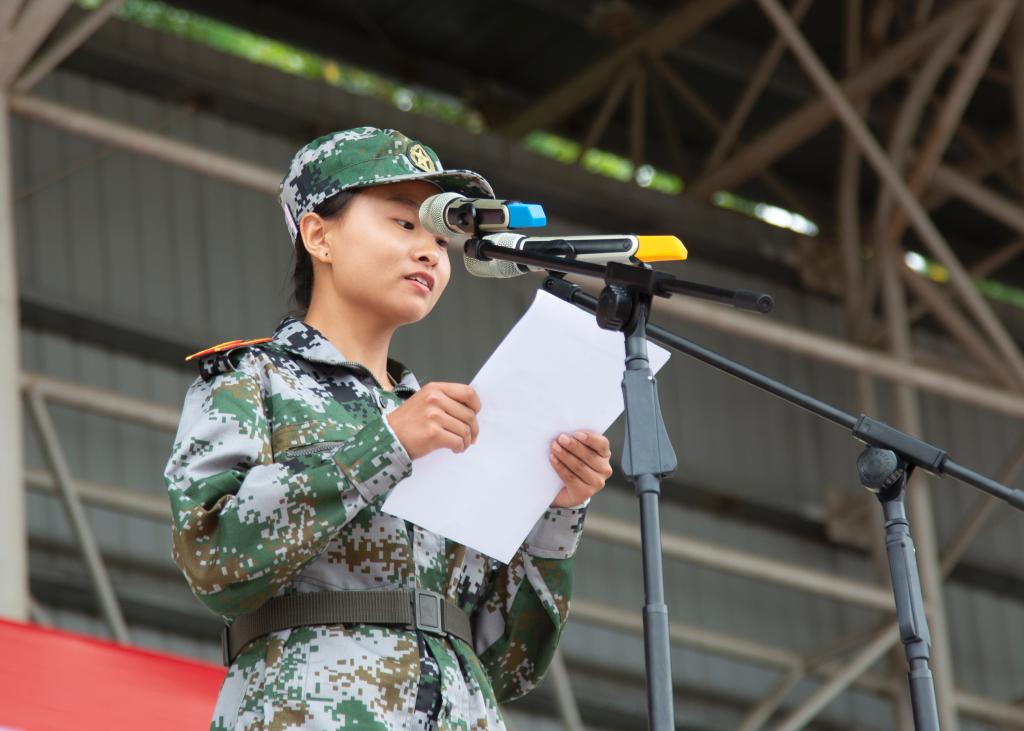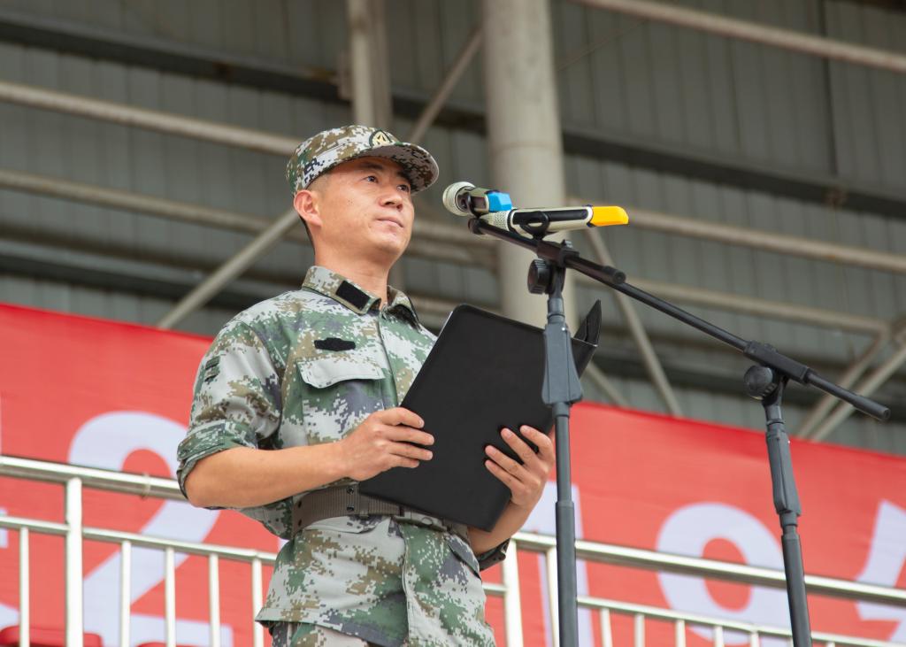 黄贺同志代表全体军训教官表示将严格自身要求,以良好的形象和精神状态高标准完成好军训任务,认真执行军训的各项规章制度;将坚持科学施训,文明施训,安排好训练时间和内容,循序渐进,逐步提高;将以身作则,培养严明的作风纪律,培养同学们令行禁止、不怕苦累、勇敢顽强、勤俭节约的优良作风。同时,他也表示会与新兵共同成长,“我们教官也会以身作则,陪伴在新兵身边,共同努力完成军训训练任务。”
