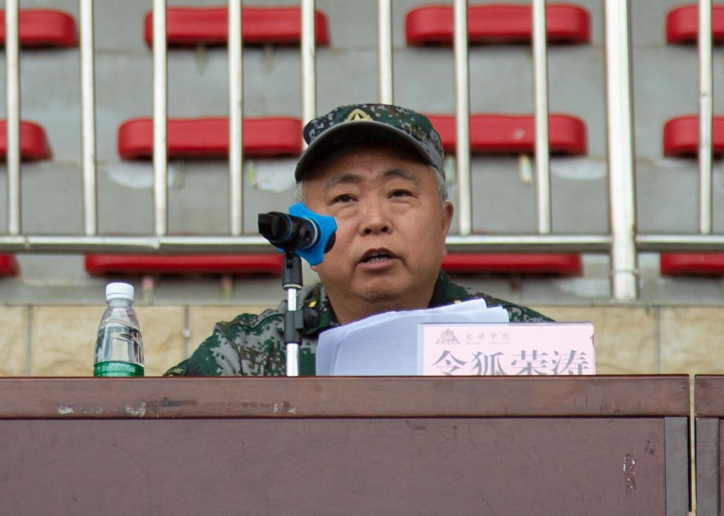安顺学院副校长令狐荣涛在现场讲话中向承训部队官兵表示了崇高敬意和衷心感谢,对全体军训团成员和参训学员表示亲切的问候,并代表学校对参训的2019级学生提出了三点希望:第一要刻苦训练,磨练意志,培养优良作风;第二要不忘初心,牢记使命;第三要展现新时代大学生的风采,传承优良作风。