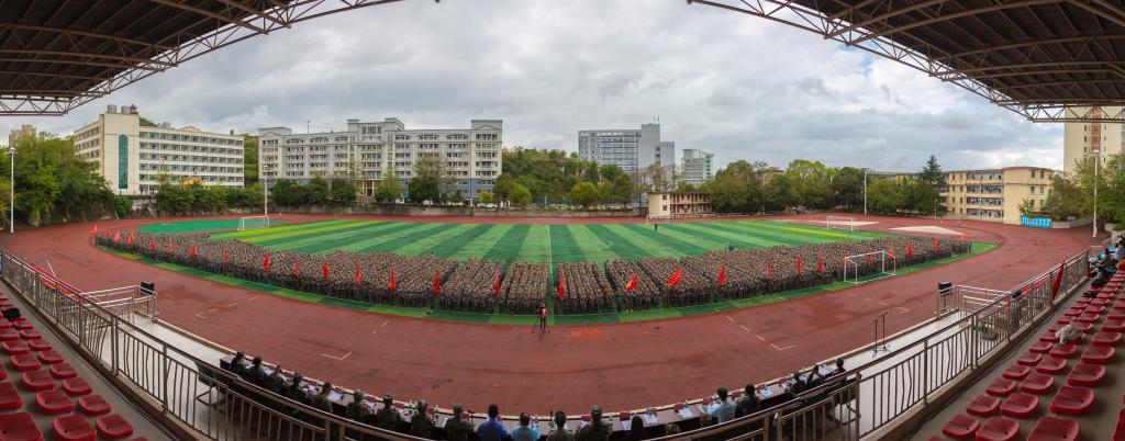 10月8日下午,安顺学院2019级学生军训动员大会在学校足球场隆重召开。约3000名军训团新兵身着戎装,用饱满的精神和昂扬的斗志迎接军训的到来。