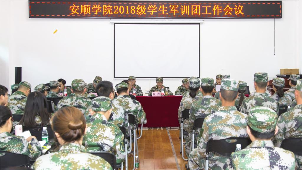 9月10日下午,安顺学院召开2018级学生军训团工作会议。军训团政委、临时党委书记、副院长王芳恒,西秀区人民武装部参谋李桂平,2018级学生军训团团部主要干部参加会议,军训团副团长、统战部部长兼学生处(工部)处长(部长)、武装部部长蔡少平主持会议。
