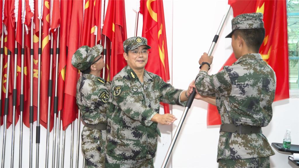 会后,王芳恒为学生军训团各连队授旗。(文/图:宣传部 周国宇/王键)
