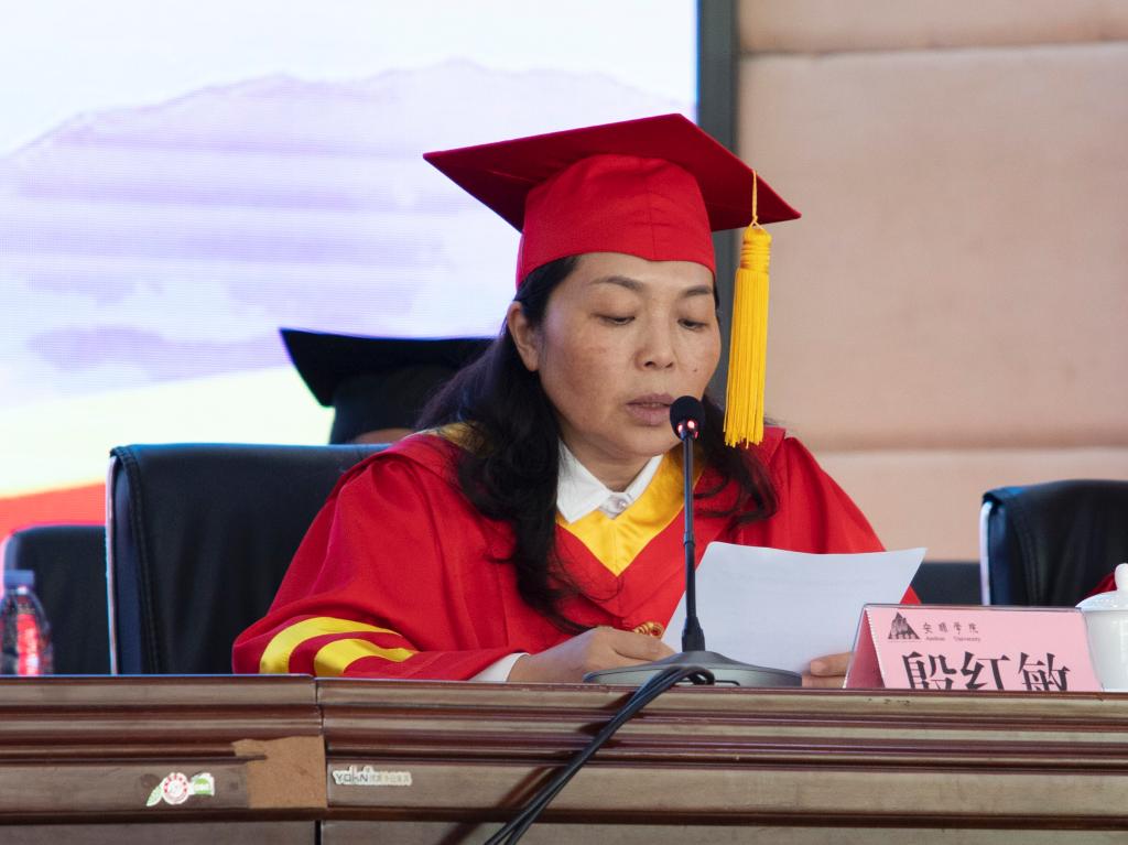 安顺学院党委委员、副校长殷红敏宣读2024年毕业证、学士学位获得者名单