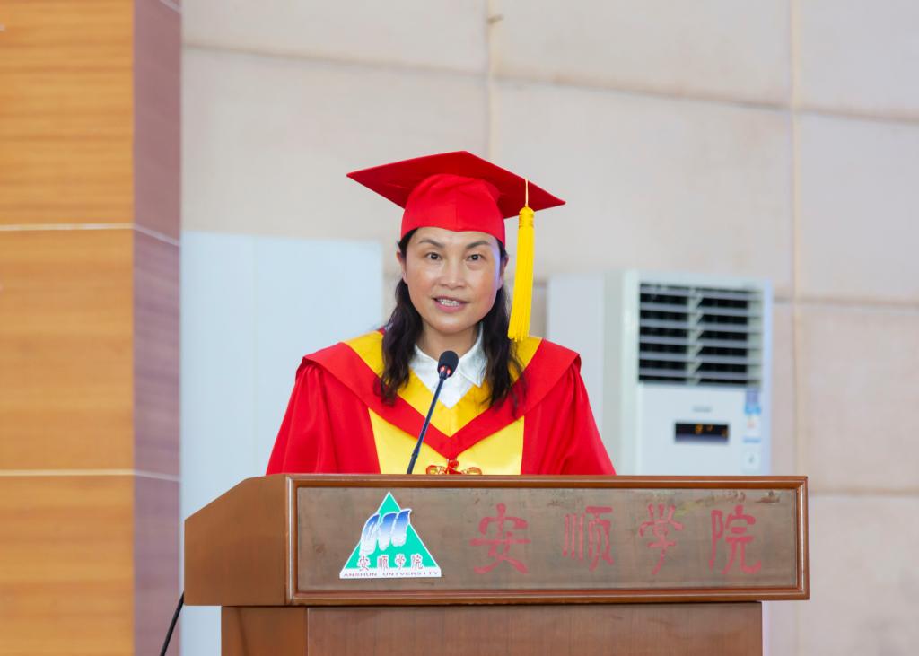 安顺学院校长曾丽以“以梦为马行稳致远 追光而行万里可期 以奋斗之笔书写无悔青春”为题致辞
