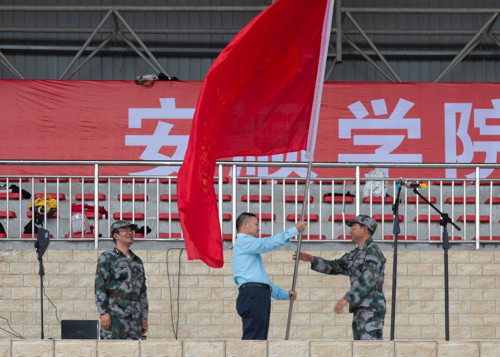 在雄壮激昂的国歌声中,安顺学院2019级新生军训动员大会正式拉开帷幕。陶文彩副书记宣布安顺学院2019级学生军训团干部名单,吴次南校长向军训团副团长蔡少平同志授予安顺学院军训团团旗。