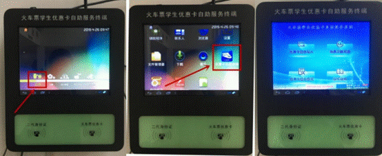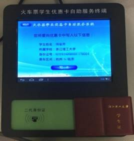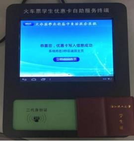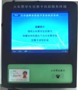 1、火车票学生优惠卡自助服务终端样式: