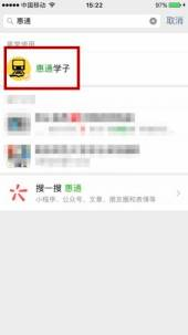 1.在微信搜索栏搜索微信公众号“惠通学子”或者扫描惠通学子的微信公众号二维码,关注“惠通学子”公众号。