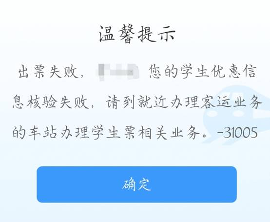 当学生买票在12306买票时提示优惠信息核验失败时,请学生在12306app个人资质查询里仔细核查所绑定的优惠区间是否是正确的站点名称,若发现绑定站点不正确或与实际乘车区间站点(学校--家庭)不符时,请尽快找老师修改优惠卡内站名名称,然后去车站自助机刷身份证、优惠卡重新绑定资质信息,重新绑定资质以后12306上资质信息区间修改成功后才可以买票!